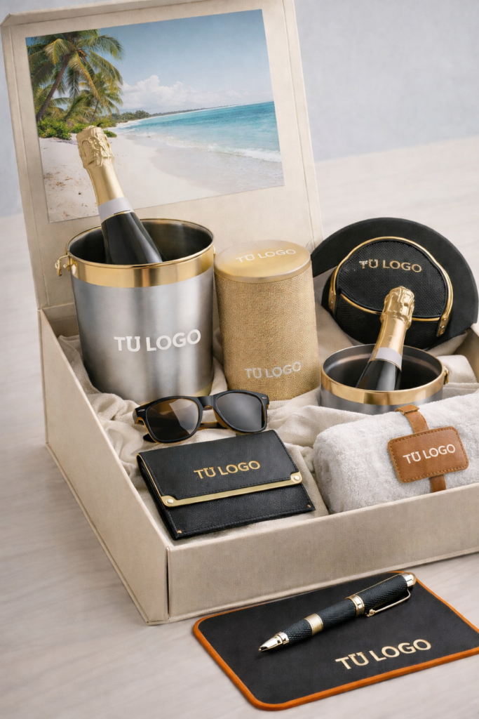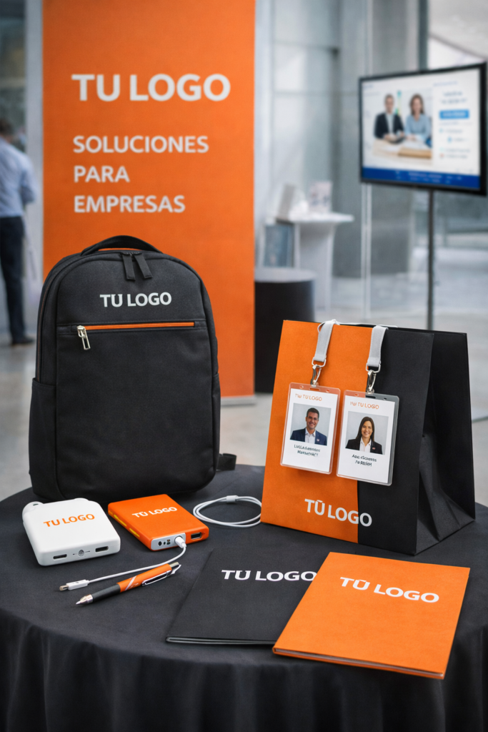 Artículos de uso diario (botellas, tecnología, papelería) con calidad premium.
