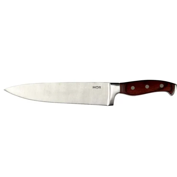 0036| Juego de Cuchillo y Tenedor de 8″ en Acero Inoxidable y Mango de Madera de Acero