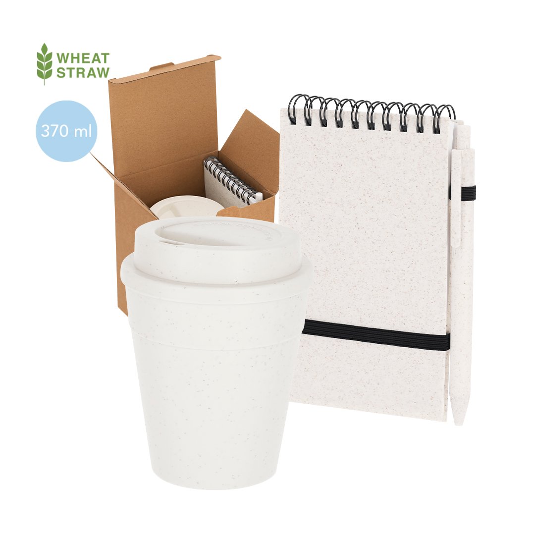 Vaso PP, 370 ml. Bloc Caña de Trigo/ PP, Portada Flexible, 70 Hojas. Bolígrafo Caña de Trigo/ PP