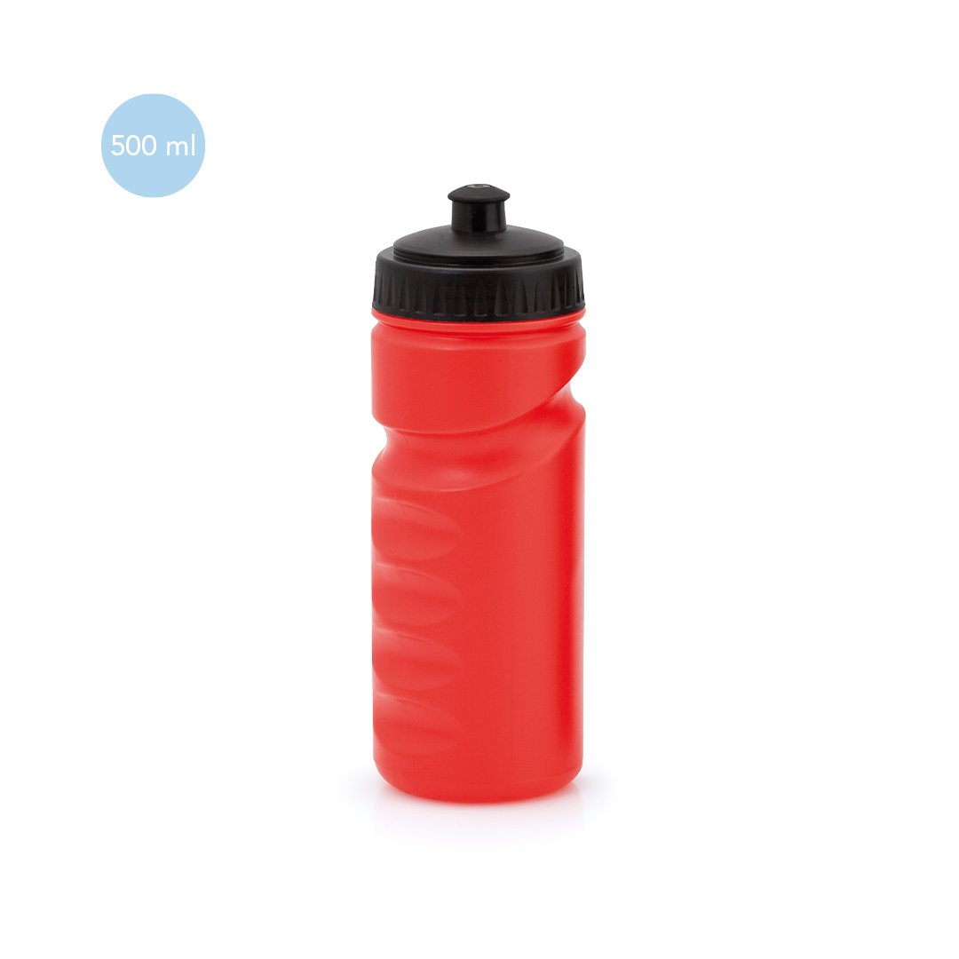 Botella de 500ml de capacidad con cuerpo ergonómico acabado en PE de vivos y variados colores. Con tapón a rosca y dosificador de seguridad.