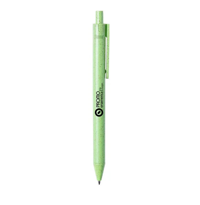 Bolígrafo de línea nature con mecanismo pulsador. Cuerpo en caña de trigo y PP, para así fomentar la utilización de materias primas naturales y reducir las emisiones contaminantes.
