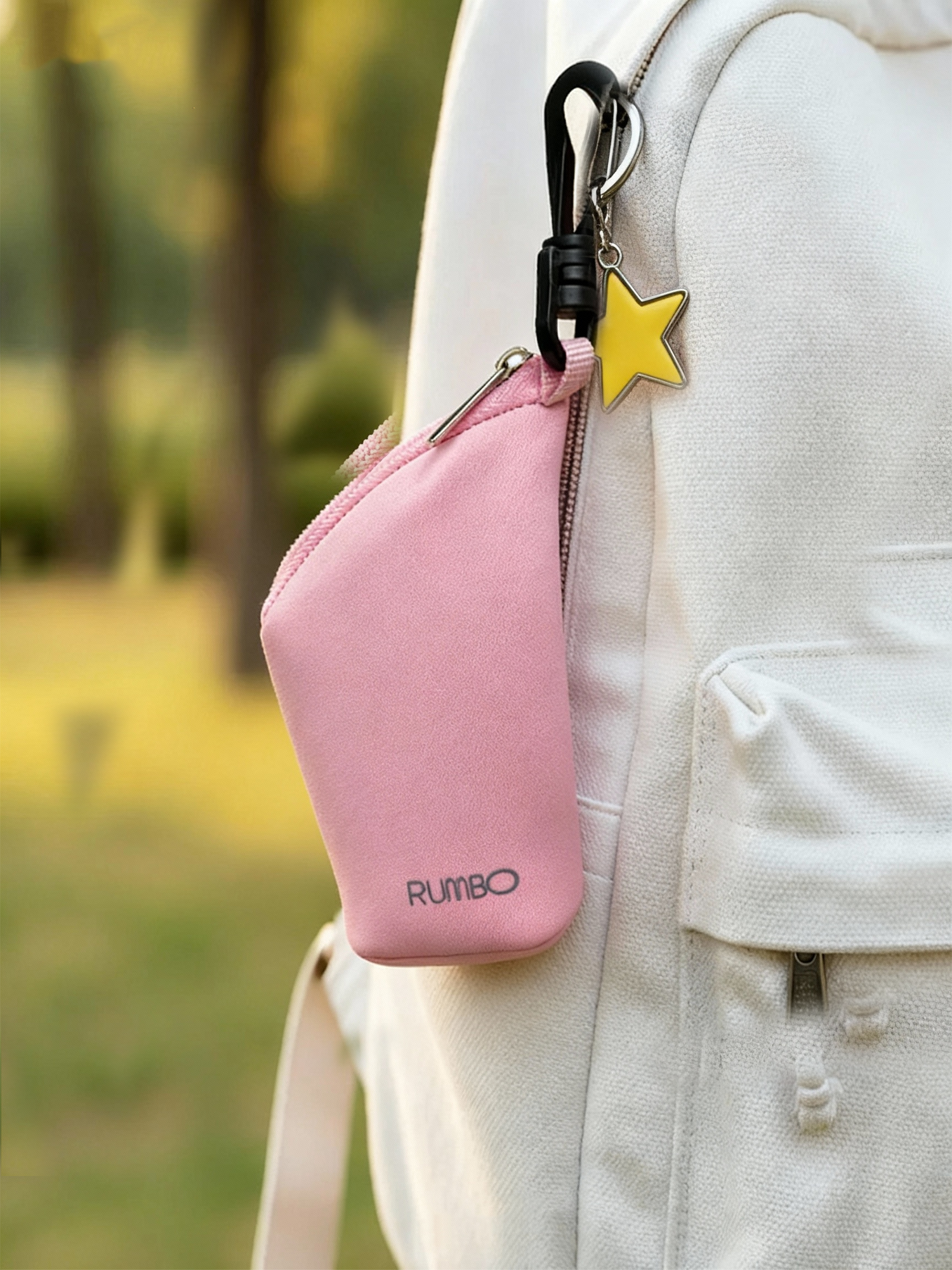 Yerbera de diseño ergonómico marca RUMBO, fabricada en tela cordura de alta resistencia con interior impermeable. Cuenta con cierre reforzado y mosquetón de transporte, ideal para actividades al aire libre y sets de mate portátiles. Disponible en una amplia gama de colores para adaptarse a la identidad de tu empresa.