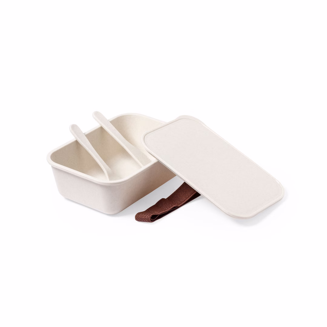 Fiambrera fabricada en PP veteado libre de BPA. De 1 l de capacidad, incluye cinta elástica de seguridad con tenedor y cuchillo. Certificación Food Grade, garantizando la seguridad cuando los alimentos entran en contacto con el material usado para fabricar el producto.